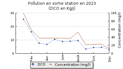 | DBO5 | 40 Kg/j | 32 % | 188 mg/l | 96 % | 1,6 Kg/j | 7,1 mg/l |