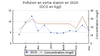 | DBO5 | 58 Kg/j | 39 % | 212 mg/l | 97 % | 1,5 Kg/j | 4,9 mg/l |