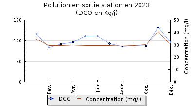 | DBO5 | 1 284 Kg/j | 65 % | 415 mg/l | 99 % | 14 Kg/j | 4,2 mg/l |