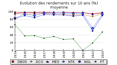 | DBO5 | 98 Kg/j | 41 % | 228 mg/l | 98 % | 1,9 Kg/j | 3,9 mg/l |