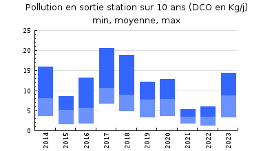 | DBO5 | 3,4 Kg/j | 2,1 % | 9,5 mg/l | 68 % | 1,1 Kg/j | 3,0 mg/l |
