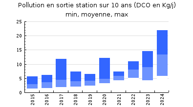 | DBO5 | 52 Kg/j | 34 % | 320 mg/l | 94 % | 3,1 Kg/j | 21 mg/l |