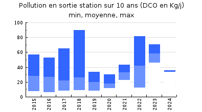 | DBO5 | 74 Kg/j | 34 % | 95 mg/l | 96 % | 3,0 Kg/j | 3,9 mg/l |