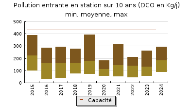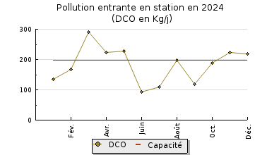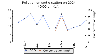 | DBO5 | 74 Kg/j | 34 % | 245 mg/l | 99 % | 0,8 Kg/j | 2,4 mg/l |