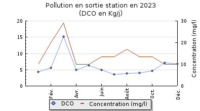 | DBO5 | 56 Kg/j | 32 % | 157 mg/l | 97 % | 1,4 Kg/j | 3,3 mg/l |