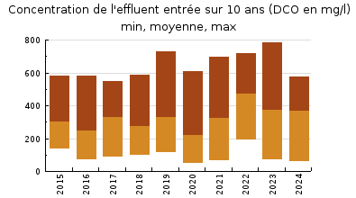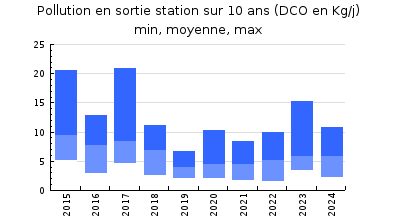 | Station d'épuration : Evaluation step : bon. Bon entretien réalisé par un exploitant privé : l'exploitation est réalisée par SUEZ ENVIRONNEMENT. Bon suivi de la station. Lensemble des équipements (préleveurs, mesures ) installés sur la station fonctionne bien. Le matériel est propre et les réglages sont cohérents. Charge hydraulique : les autosurveillances règlementaires de 2024 ont déterminé un volume moyen entrant de 500 m3/j, soit une charge hydraulique de 3333 EH, à raison de 150 l/j/EH. Le volume nominal jour de la station est de 735 m3, le volume moyen entrant sur ces autosurveillances correspond donc à 68% de ce volume nominal. Charge organique : la charge organique (DBO5 pondérée par DCO) représente 977 EH (2023 : 871,5 EH), soit 40% (2023 : 34,9%) de la capacité nominale de la station. La station qui est dimensionnée pour lorganique Nominal à 2500 EH, à raison de 60 g pour la DBO5 et 120 g pour la DCO, a la possibilité de récupérer plus de pollution (DBO5 et DCO) au travers du réseau dassainissement. Rendements épuratoires : les rendements épuratoires obtenus sur les différents paramètres sont très bons sur la DBO5 (97,3%), les MES (97,8%), sur la DCO (96,2%), et bon sur le NTK (94,8%) et bon sur le Pt (90%). Bonne qualité du rejet : les résultats obtenus sur les différents paramètres sont très satisfaisants au moment de la visite et lors des autosurveillances règlementaires. Point sur la visite Charge hydraulique : sur la période du 1 au 2/07/2024, le volume entrant a été mesuré à 276 m3/j, soit une charge hydraulique de 1867 EH, à raison de 150 l/j/EH, correspondant à 74,7% de la capacité nominale hydraulique de la station Proposition : au vu de la place disponible sur le site de la station et dans loptique dune bonne gestion de lénergie, il serait peut-être possible, après une étude de faisabilité, denvisager linstallation de panneaux photovoltaïques pour soutenir la consommation électrique des équipements installés sur la station. En fonction de lévolution de la législation sur la réutilisation de leau usée traitée, la Commune pourrait envisager de réutiliser leau après la mise en place dun traitement tertiaire (lampe UV ). |