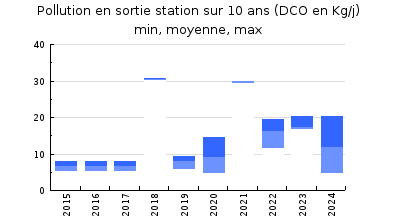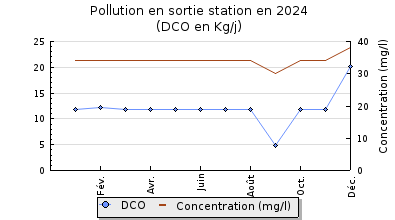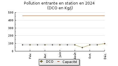 | DBO5 | 19 Kg/j | 8,4 % | 58 mg/l | 91 % | 1,7 Kg/j | 5,0 mg/l |