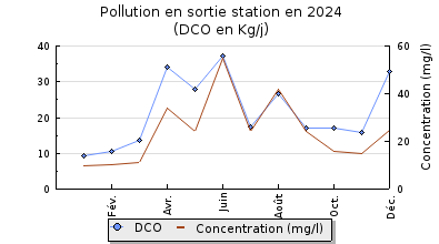 | DBO5 | 139 Kg/j | 44 % | 156 mg/l | 97 % | 4,4 Kg/j | 4,9 mg/l |