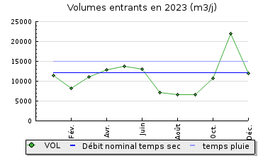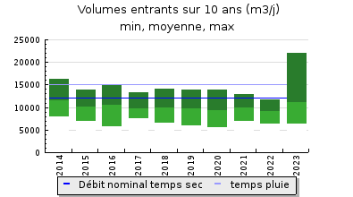 | Débit nominal temps pluie : | 15 000 m3/j |