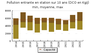 | Système de collecte : ? Déversements d'eaux usées observés sur le réseau (DO / trop plein de poste) Par temps sec : Non Par temps de pluie : Oui ? Arrivées d'effluents non domestiques Oui - Une partie des activités spécifiques possèdent une convention de rejet ? Arrivées d'eaux parasites temporaires et/ou permanentes Arrivée d' ECPP - 343 % de la capacité nominale (Source : Volume journalier moyen maximum reçu : Octobre 2023 - 28 820 m³/j) ? Surcharges hydrauliques (sur plusieurs jours) Oui - Surcharges hydrauliques fréquentes entraînant des déversements au milieu naturel (Volume journalier moyen maximum reçu : Octobre 2023 - 28820 m³/j) ? Entretien du réseau d'assainissement Entretien correct des équipements électromécaniques (pompes)? Oui Entretien régulier des postes (pompages des flottants et curage des postes)? Oui Destination des produits de curage? Station de Souleyrie en tête de réseaux - Brouzac Poste de relèvement principal sous télésurveillance? Oui Réseau unitaire : curage régulier des tronçons et des DO? Oui Étude diagnostic réseau réalisée : Oui (2017) Le maître d'ouvrage fait il des recherches de mauvais branchements? Oui Le maître d'ouvrage fait-il ou prévoit-il de faire des travaux de réhabilitation du réseau? Oui, des travaux issus du programme du schéma directeur sont en cours. Les opérations d'entretien courant sont planifiées. |