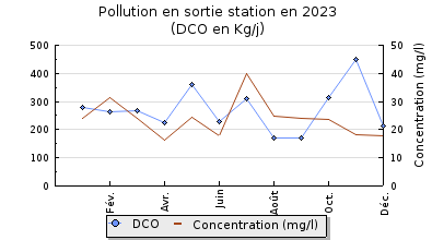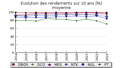 | DBO5 | 2 126 Kg/j | 89 % | 215 mg/l | 99 % | 22 Kg/j | 2,0 mg/l |