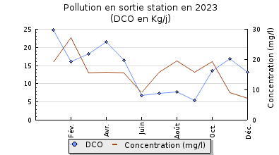 | DBO5 | 88 Kg/j | 38 % | 127 mg/l | 99 % | 1,3 Kg/j | 1,3 mg/l |