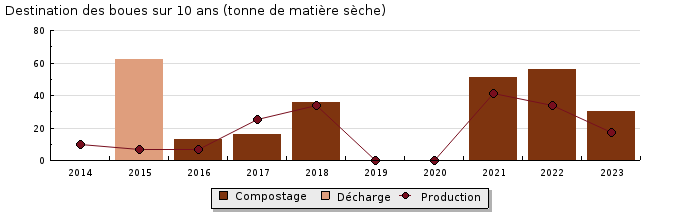 | Sous produits : Capacité de stockage des boues suffisante pour garder un taux de boue correct dans les bassins ? lits de séchage Production de boue théorique de la station (calcul MAGE et non pas exploitant) (hors réactifs / matières de vidange /apports extérieurs..): données 2023: ((DBO5 éliminée + MES éliminée)/2) x 0,7x 365 = 24 tonnes de MS Production de boue réelle de la station (calcul MAGE et non pas exploitant) (hors réactifs): données 2023: 16,8 tonnes de MS extraites du clarificateur. 22,4 tonnes de MS évacuées vers Allassac. Taux de production de boue calculé par la MAGE (prod réelle / prod théorique): 70% Le taux de production de boue de la station est-il correct ? non |