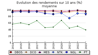 | PT | 3,8 Kg/j | 6,0 mg/l | 39 % | 2,3 Kg/j | 3,9 mg/l | |