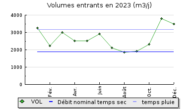| Débit nominal temps pluie : | 3 180 m3/j |