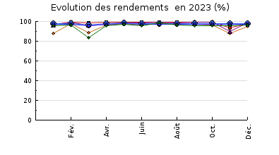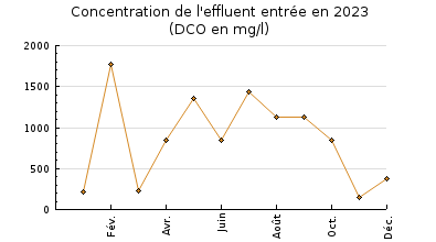 | Sous produits : A linverse de 2022, la production de boues de 2023 est plus faible, affichant une sous production, notamment en fin dannée où la production a été limitée. Lévacuation de boues a été plus importante, elle est liée à un temps de stockage plus long des boues dans la serre. Lexploitant a déclaré 11.3t de déchets de dégrillage et tamisage, résultat stable avec lannée précédente. |