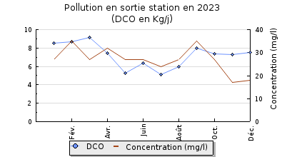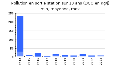 | DBO5 | 93 Kg/j | 46 % | 383 mg/l | 99 % | 0,9 Kg/j | 3,3 mg/l |