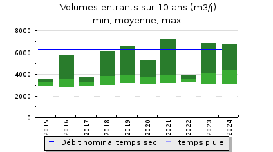 | Débit nominal temps sec : | 6 300 m3/j |