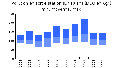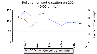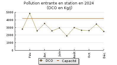 | DBO5 | 1 079 Kg/j | 51 % | 262 mg/l | 99 % | 13 Kg/j | 3,0 mg/l |
