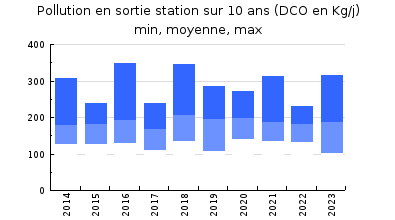 | DBO5 | 1 423 Kg/j | 42 % | 280 mg/l | 99 % | 15 Kg/j | 2,6 mg/l |