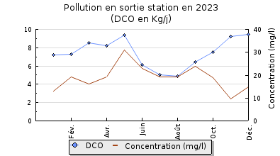 | DBO5 | 86 Kg/j | 33 % | 245 mg/l | 98 % | 1,3 Kg/j | 3,0 mg/l |