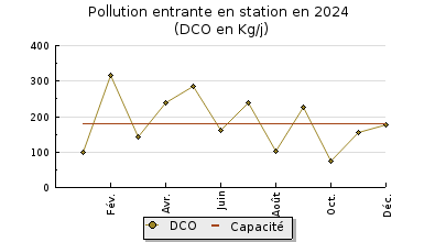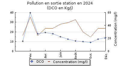 | DBO5 | 61 Kg/j | 34 % | 149 mg/l | 97 % | 1,6 Kg/j | 3,7 mg/l |