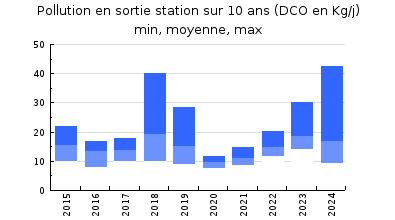 | DBO5 | 174 Kg/j | 26 % | 217 mg/l | 98 % | 3,1 Kg/j | 3,5 mg/l |