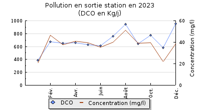 | DBO5 | 4 892 Kg/j | 47 % | 298 mg/l | 96 % | 207 Kg/j | 11 mg/l |