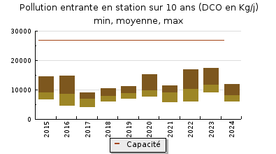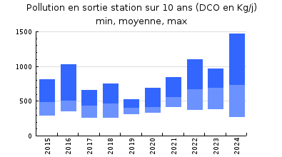 | DBO5 | 3 593 Kg/j | 34 % | 256 mg/l | 94 % | 224 Kg/j | 14 mg/l |
