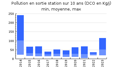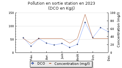 | DBO5 | 446 Kg/j | 78 % | 328 mg/l | 99 % | 3,4 Kg/j | 2,5 mg/l |
