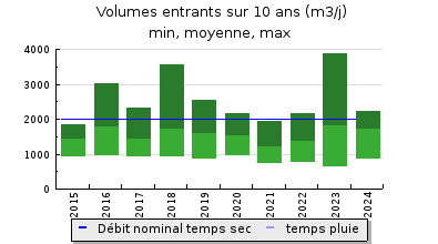 | Débit nominal temps sec : | 2 000 m3/j |