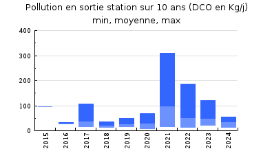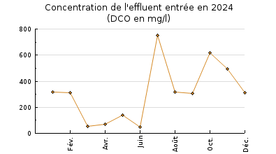 | DBO5 | 205 Kg/j | 57 % | 159 mg/l | 90 % | 20 Kg/j | 13 mg/l |