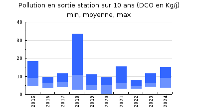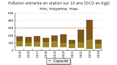 | Système de collecte : Diagnostic d'assainissement en cours. Bien que les travaux se poursuivent, une grande partie du réseau est encore unitaire. La suppression des rejets directs, la réhabilitation, voir l'extension du réseau afin d'améliorer le taux de remplissage de cette installation sont essentiels. |