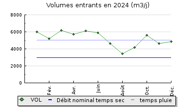 | Débit nominal temps pluie : | 5 000 m3/j |