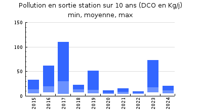 | DBO5 | 66 Kg/j | 37 % | 243 mg/l | 97 % | 1,8 Kg/j | 5,3 mg/l |