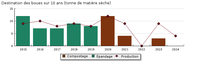 | Sous produits : Les refus de dégrillage sont quantifiés et évacués avec les ordures ménagères. Il sagit de 450kg daoût à décembre. 3m³ de graisses et 0,5m³ de sable ont été évacués de la nouvelle station. Evaluation de la production de boues entre le 01/08/2024 et le 31/12/2024 (5 mois) Lestimation de la production de boues théorique annuelle est calculée à partir des 5 bilans pollution réalisés en 2024 et de cinq modèles mathématiques. Les bilans non représentatifs ne sont pas pris en compte (très forte dilution par des eaux claires parasites par exemple) et une pondération saisonnière est réalisée car la charge évolue significativement 60 jours dans lannée avec laffluence touristique. Les bilans daoût 2023 et août 2024 ont été utilisés pour lestimation de la production de boues estivale. Les valeurs extrêmes issues des calculs sont écartées afin de proposer une estimation représentative de la production de boues. Production de boues théorique (kg de MS) : Entre 5800 et 6700 Production de boues réelle (kg de MS) : 4000 Ecart (%) : -0,3 à -0,8 La production réelle est calculée à partir de la concentration des boues extraites mesurée chaque mois et du volume extrait mesuré avec le débitmètre électromagnétique. Lunité de déshydratation mobile na pas été utilisée en 2024. Il ny a pas eu dévacuation de boues de la station en 2024. Lautonomie du silo est estimée à environ 4,5 mois avec une estimation de concentration des boues dans le silo de 25g/L (donnée constructeur). |
