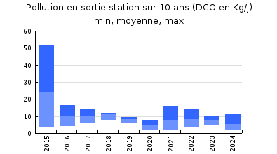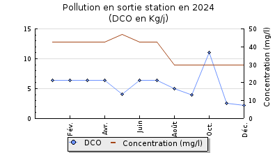 | DBO5 | 58 Kg/j | 47 % | 422 mg/l | 99 % | 0,5 Kg/j | 3,7 mg/l |
