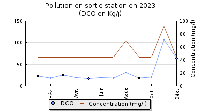 | DBO5 | 116 Kg/j | 48 % | 243 mg/l | 92 % | 9,8 Kg/j | 13 mg/l |