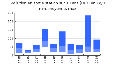 | DBO5 | 273 Kg/j | 33 % | 142 mg/l | 97 % | 8,1 Kg/j | 3,4 mg/l |