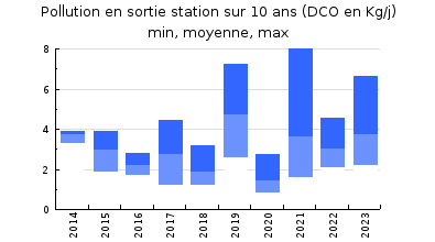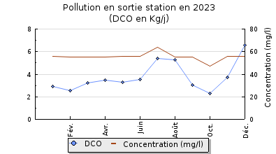 | DBO5 | 34 Kg/j | 28 % | 505 mg/l | 98 % | 0,6 Kg/j | 8,0 mg/l |