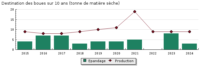 | Sous produits : 13.3 SOUS-PRODUITS ISSUS DE LASSAINISSEMENT Les refus de dégrillage sont quantifiés et évacués avec les ordures ménagères. 13.4 BOUES 13.4.1 Evaluation de la production de boues Lestimation de la production de boues théorique annuelle est calculée à partir des bilans pollution réalisés et de cinq modèles mathématiques. Les bilans non représentatifs ne sont pas pris en compte (très forte dilution par des eaux claires parasites par exemple) et une pondération saisonnière peut être réalisée si la charge évolue significativement au cours de lannée (affluence touristique par exemple). Les valeurs extrêmes issues des calculs sont écartées afin de proposer une estimation représentative de la production de boues. Production de boues théorique (kg de MS) : 7900 à 8500 Production de boues réelle (kg de MS) : 8 609 - 425 kg de Chaux = 8 184 kg de MS Ecart (%)* : -4 % à 3 % *Ecart (%) = (Prod réelle Prod théorique) / Prod théorique Les boues ont été épandues sur des parcelles agricoles référencées au plan dépandage au mois davril (190 m3 de boues avec une siccité de 13,3 g.L-1, soit 2 530 kg de matières sèches). Le suivi de ces opérations est réalisé par la Chambre dAgriculture. Lautonomie de stockage du silo à boues est estimée à environ 8 mois (avec une hypothèse sur la siccité des boues au sein de louvrage de 13,3 g.L-1 et un volume de stockage de 400 m3). |