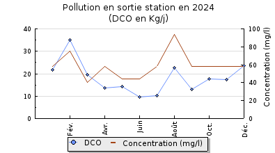 | DBO5 | 127 Kg/j | 96 % | 341 mg/l | 98 % | 2,6 Kg/j | 7,9 mg/l |