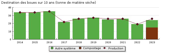 | Sous produits : Les refus du tamis rotatif sont évacués vers les ordures ménagères (puis incinérateur de Bessières) après séchage et compactage. Les boues après passage par un silo de transfert sont transportées vers la station de Palmola toutes les semaines où elles sont épaissies, séchées (sécheur solaire) puis épandues. 24.25 T de MS ont été soutirés en 2023, ce qui est très proche de la production théorique (27 T de MS). |