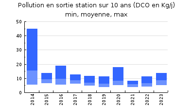 | Station d'épuration : Le taux de charge organique est d'environ 40%. Le fonctionnement de la station reste très satisfaisant. Le manuel d'autosurveillance fait toujours défaut. La station est équipée d'une supervision et d'une télésurveillance. L'aération est asservie à une sonde d'oxygène dissous (redox en secours mais sonde HS). Cette station est équipée pour traiter le phosphore (100% des analyses sont conformes). L'entretien courant est réalisé avec soin. La mesure du point A2 est à revoir. |