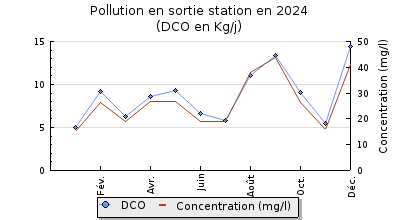 | DBO5 | 115 Kg/j | 48 % | 356 mg/l | 99 % | 1,0 Kg/j | 3,2 mg/l |