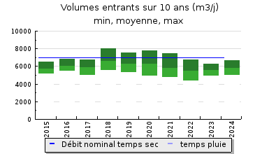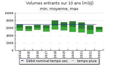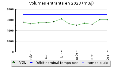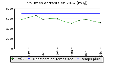 | Débit nominal temps sec : | 7 000 m3/j |