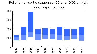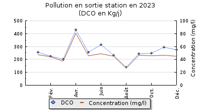 | DBO5 | 1 353 Kg/j | 64 % | 244 mg/l | 97 % | 40 Kg/j | 7,2 mg/l |