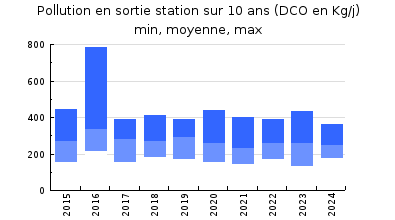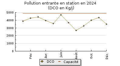 | DBO5 | 1 316 Kg/j | 63 % | 226 mg/l | 97 % | 41 Kg/j | 6,9 mg/l |