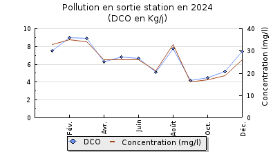 | DBO5 | 78 Kg/j | 52 % | 315 mg/l | 99 % | 0,7 Kg/j | 2,7 mg/l |
