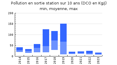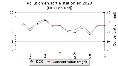 | DBO5 | 171 Kg/j | 48 % | 368 mg/l | 99 % | 1,4 Kg/j | 3,0 mg/l |